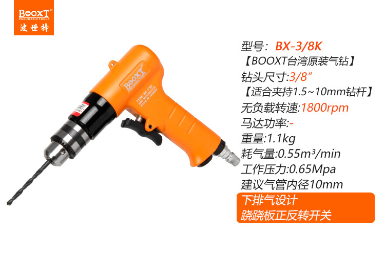 東莞市強勁五金工具有限公司提供臺灣BOOXT波世特品牌氣動工具,快速正反轉(zhuǎn)氣鉆BX-3/8K廠家直銷,首件享特價。咨詢熱線:4008301980