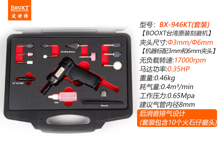東莞市強勁五金工具有限公司提供臺灣BOOXT波世特品牌氣動工具,風(fēng)磨機套裝BX-946KT廠家直銷,首件享特價。咨詢熱線:4008301980