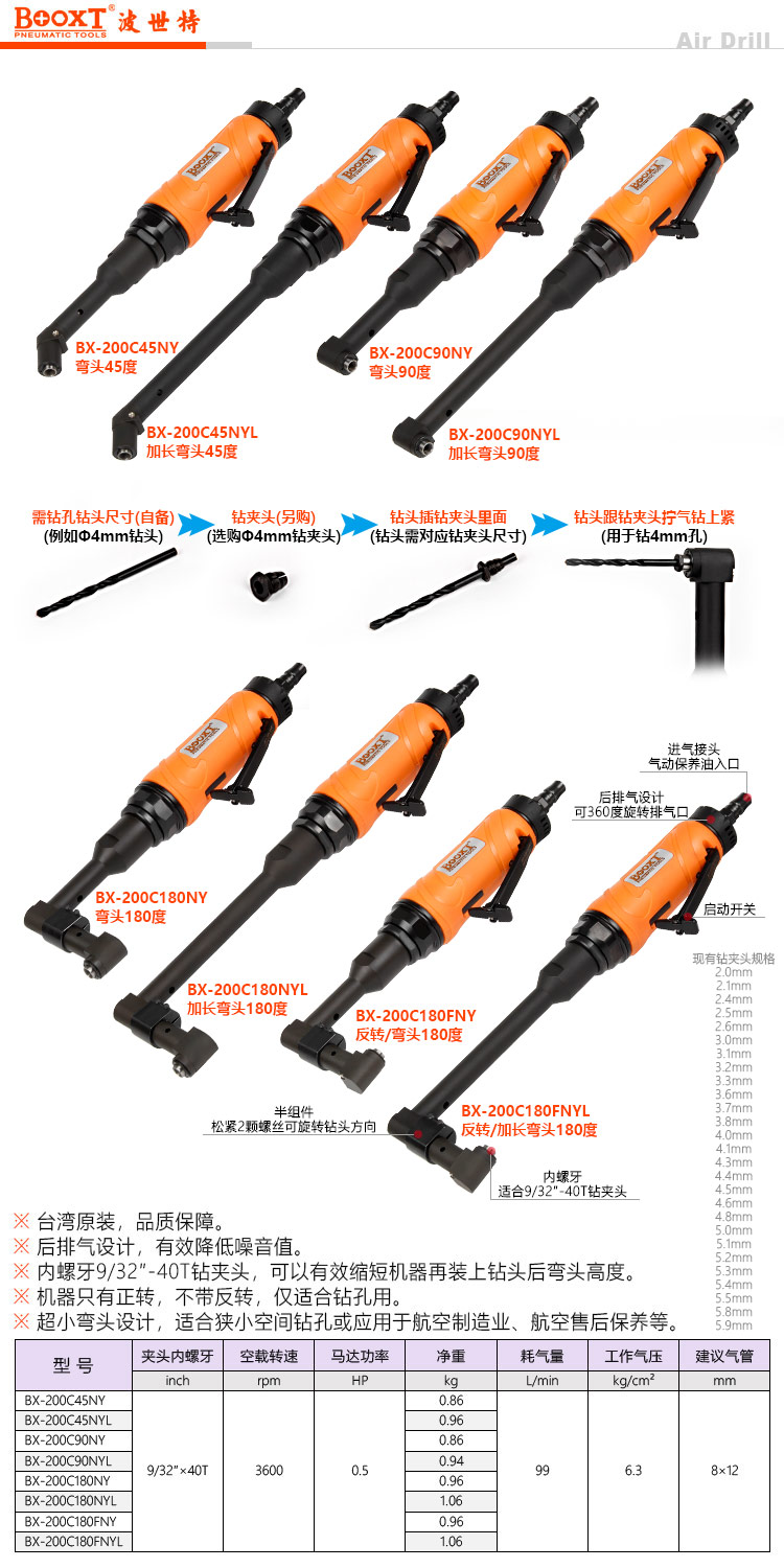 東莞市強(qiáng)勁五金工具有限公司提供臺(tái)灣BOOXT波世特品牌氣動(dòng)工具,航空氣鉆彎頭BX-200C90NY廠家直銷,首件享特價(jià)。咨詢熱線:4008301980