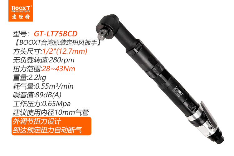 東莞市強勁五金工具有限公司提供臺灣BOOXT波世特品牌氣動工具,氣動彎頭扳手GT-LT75BCD廠家直銷,首件享特價。咨詢熱線:4008301980