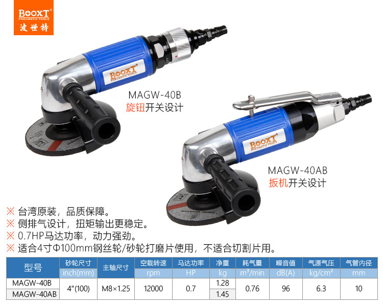 東莞市強勁五金工具有限公司提供臺灣BOOXT波世特品牌氣動工具,日系氣動角磨機MAGW-40B廠家直銷,首件享特價。咨詢熱線:4008301980