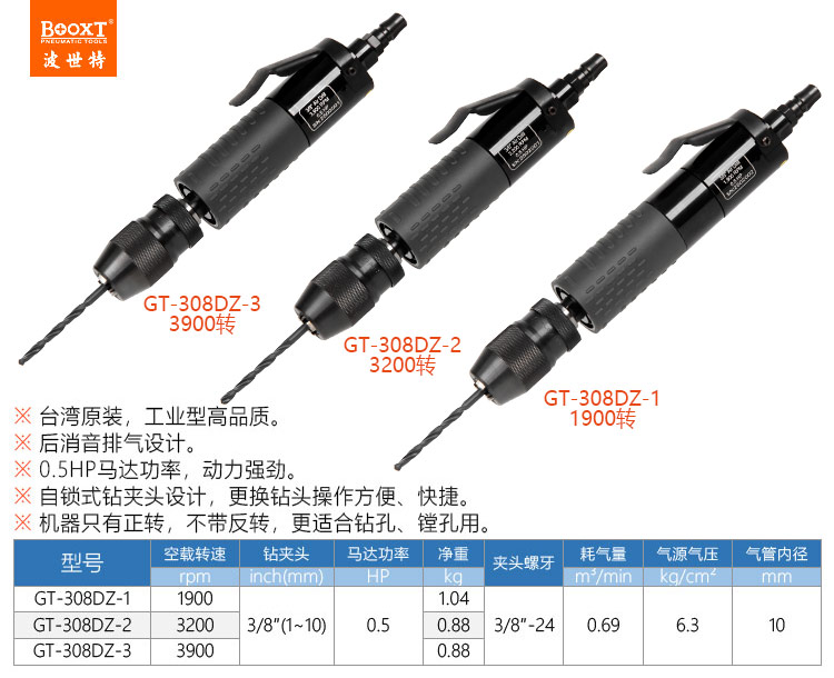 東莞市強(qiáng)勁五金工具有限公司提供臺灣BOOXT波世特品牌氣動工具,直型氣鉆GT-308DZ-3廠家直銷,首件享特價(jià)。咨詢熱線:4008301980