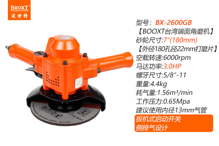 東莞市強勁五金工具有限公司提供臺灣BOOXT波世特品牌氣動工具,端面氣動砂輪機BX-2600GB廠家直銷,首件享特價。咨詢熱線:4008301980