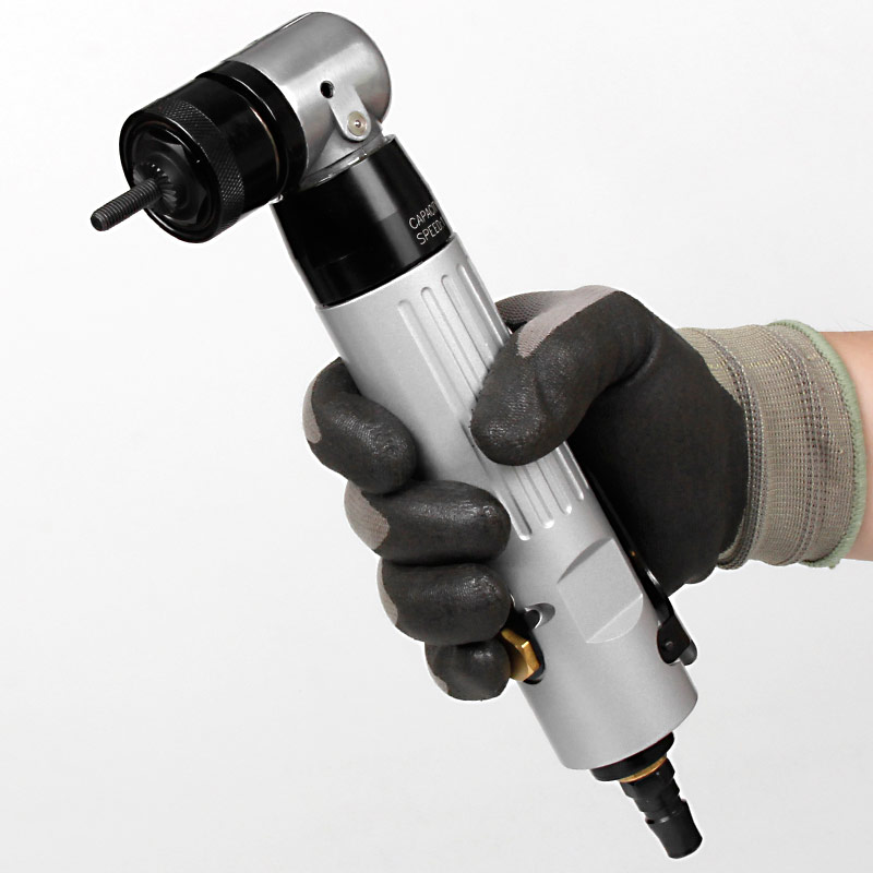 彎頭式設計,適合狹窄工位鉚接作業(yè)(特別適合自行車車架使用)。
