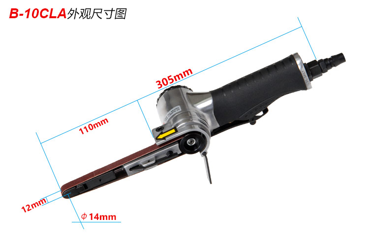 • 產(chǎn)品參數(shù): 砂帶尺寸:10×330mm; 馬達(dá)功率:0.5hp 空載轉(zhuǎn)速:20000rpm; 工具長度:305mm; 工具重量:0.84kg; 耗 氣 量:0.15m3/min; 使用工作氣壓:0.65Mpa; 推薦使用內(nèi)徑8mm氣管; 平時使用應(yīng)多加氣動油保養(yǎng). 【工業(yè)型/下開關(guān)】