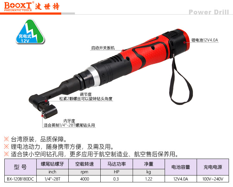 東莞市強(qiáng)勁五金工具有限公司提供臺(tái)灣BOOXT波世特品牌五金工具,鋰電航空彎頭鉆BX-120B180DCL廠家直銷,首件享特價(jià)。咨詢熱線:4008301980