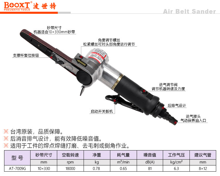 東莞市強勁五金工具有限公司提供臺灣BOOXT波世特品牌氣動工具,AT-7009G圓手柄氣動砂帶機廠家直銷,首件享特價。服務(wù)熱線:4008301980