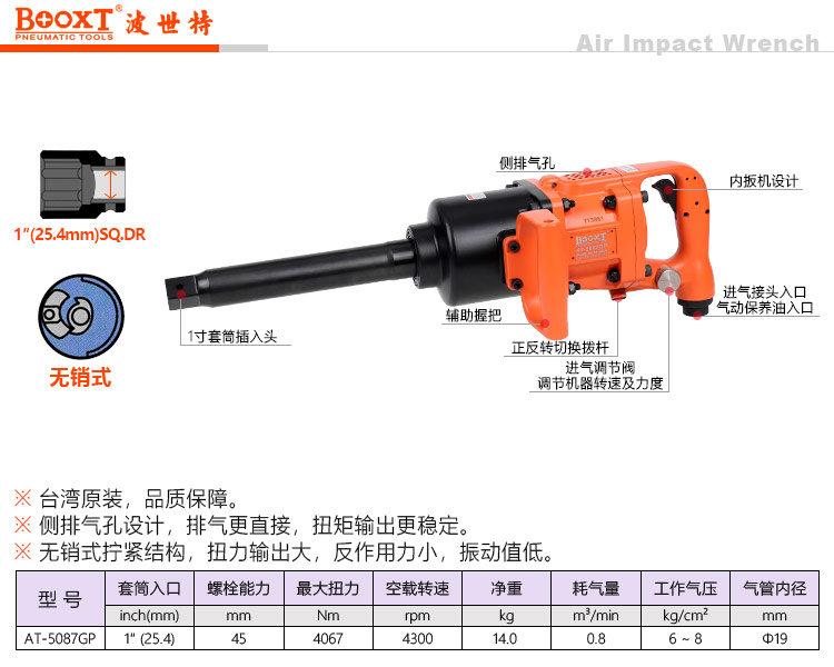 東莞市強(qiáng)勁五金工具有限公司提供臺(tái)灣BOOXT波世特品牌氣動(dòng)工具,無銷式氣動(dòng)風(fēng)炮AT-5087GP廠家直銷,首件享特價(jià)。咨詢熱線:4008301980