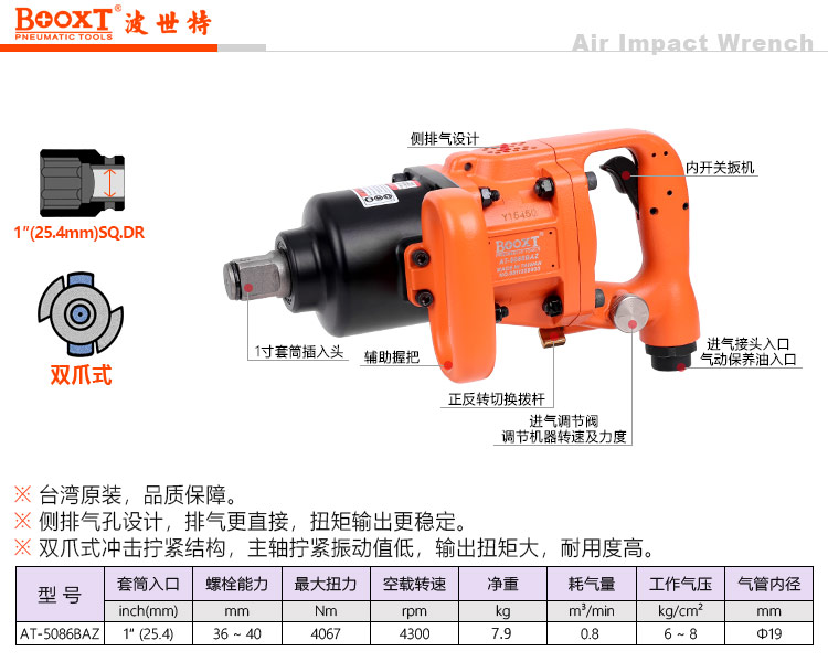 東莞市強(qiáng)勁五金工具有限公司提供臺(tái)灣BOOXT波世特品牌氣動(dòng)工具,雙爪式氣動(dòng)風(fēng)炮AT-5086BAZ廠家直銷,首件享特價(jià)。咨詢熱線:4008301980