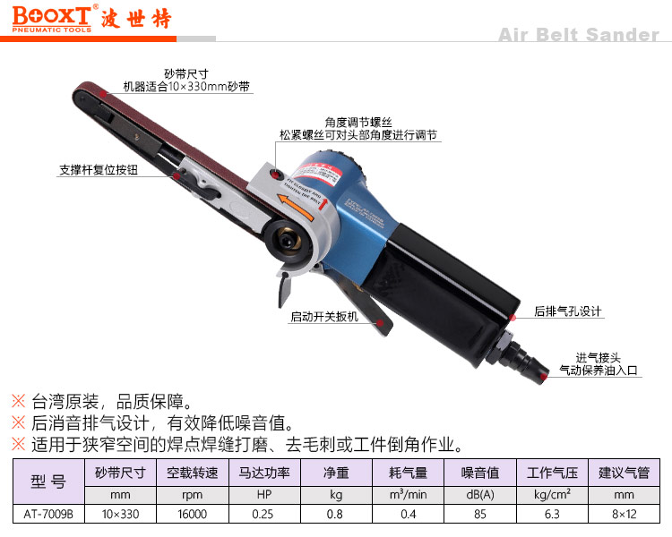 東莞市強勁五金工具有限公司提供臺灣BOOXT波世特品牌氣動工具,AT-7009B工業(yè)級氣動砂帶機廠家直銷,首件享特價。服務熱線:4008301980