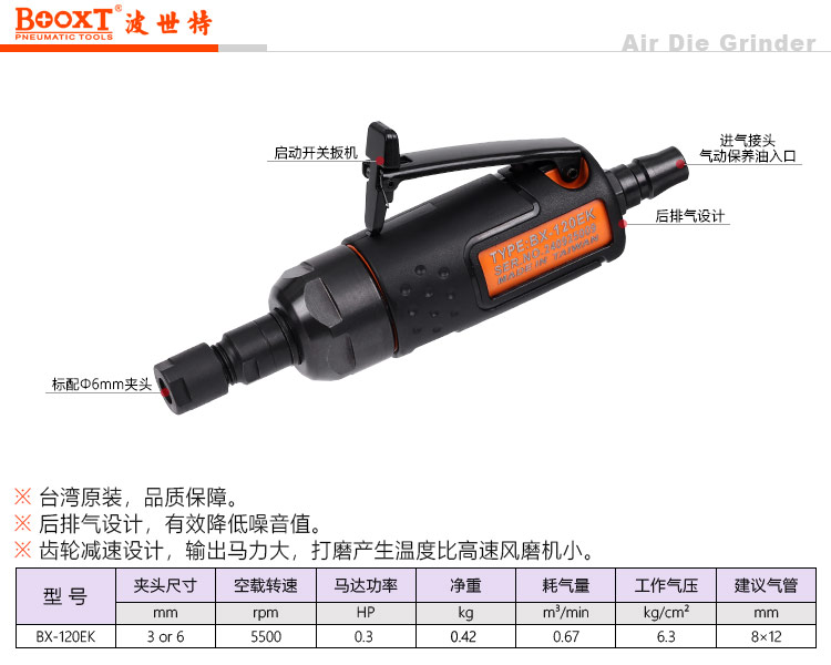 東莞市強勁五金工具有限公司提供臺灣BOOXT波世特品牌氣動工具,低速風(fēng)磨機BX-120EK廠家直銷,首件享特價。咨詢熱線:4008301980