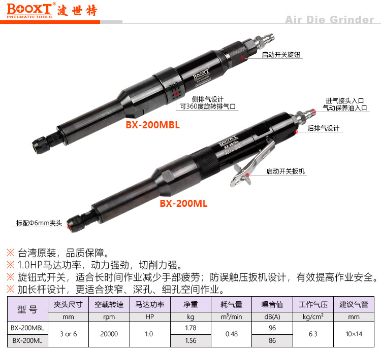 東莞市強(qiáng)勁五金工具有限公司提供臺灣BOOXT波世特品牌氣動工具,加長氣動風(fēng)磨機(jī)BX-200ML廠家直銷,首件享特價。咨詢熱線:4008301980