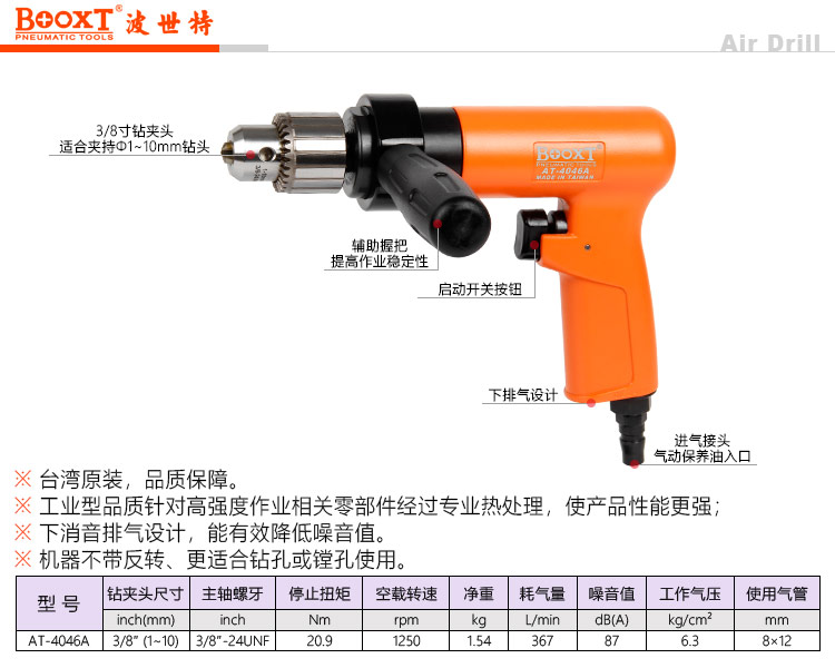 東莞市強(qiáng)勁五金工具有限公司提供臺(tái)灣BOOXT波世特品牌氣動(dòng)工具,大扭力氣動(dòng)鉆AT-4046A廠家直銷,首件享特價(jià)。咨詢熱線:4008301980