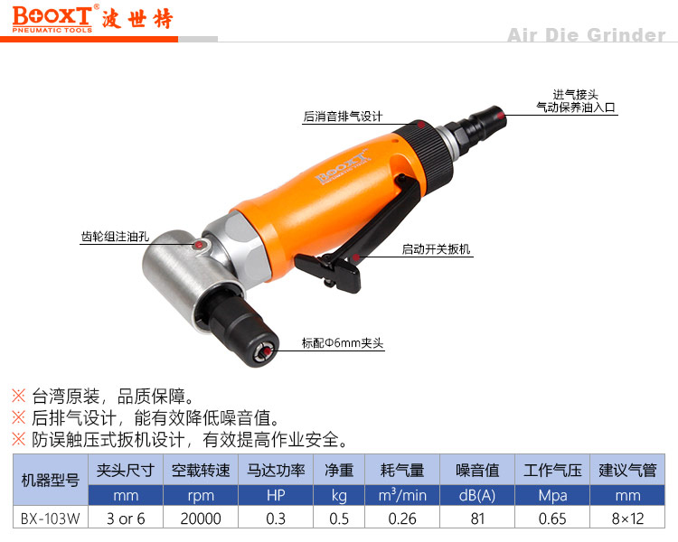 東莞市強勁五金工具有限公司提供臺灣BOOXT波世特品牌氣動工具,彎頭氣動刻磨機BX-103W廠家直銷,首件享特價。咨詢熱線:4008301980